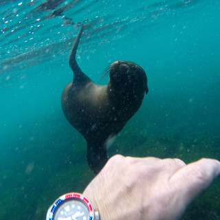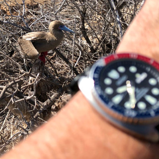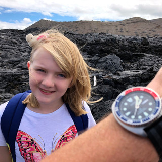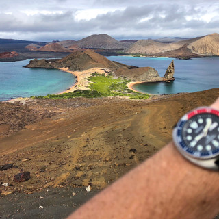 22/06/18 After a round of golf at Banbridge in the company of a very talented golfer, the TakeTime watch headed from Northern Ireland across the Atlantic to Colombia where I collected it over a pint and a catch up in our local Bogotá Beer Company (BBC) pub. 24/06/18 After breakfast we headed to colourful Usaquen market on a mission to buy a hammock. Colombia were playing so every bar and cafe was a sea of yellow. The whole city erupts every time they score a goal. 25/06/18 Today our world was packed into 162 crates and loaded onto an airport lorry ready for another move. The packers have a habit of boxing up anything not nailed down so the TakeTime watch was safely on my wrist throughout! 30/06/18 An early start to fly via Guayaquil to Seymour Airport on Baltra island in the Galápagos. We then headed to Puerto Ayora to get our bearings. Although not that far it’s a convoluted route to get here involving a car, two planes, a bus, a ferry and a pickup truck. We whiled away the afternoon spotting sea lions incongruously kipping on park benches and iguanas strolling along the main shopping street. 01/07/18 We joined the Galápagos Odyssey yacht and got to know our 11 travelling companions, who seem a pleasant bunch. It’s nice that there are five children amongst them of similar ages to ours. After a briefing by Jaime, our sociable and knowledgeable naturalist guide, and a splendid buffet lunch we sailed around the coast of Santa Cruz for an amazing encounter swimming with sea lions. This was followed by a hike up Dragon Hill spotting numerous huge marine and land iguanas and indigenous birds. Animals here have little fear of humans so although we are told not to approach them too closely there’s nothing to stop them from coming right up to you, and they do. During the evening a dozen or so large sharks congregated around the rear of the boat hoping for some scraps from the galley. 02/07/18 We had moved to Rabida island overnight which has splendid red beaches and a large sea lion population. After exploring cacti forests and dodging swooping pelicans we returned to the yacht for more underwater encounters with sea lions and myriads of tropical fish. Moving on during the afternoon to the very aptly named Chinese Hat we got up close and personal with huge shoals of fish before hiking on the volcanic cone to watch the sunset. 03/07/18 It was a long overnight cruise to the little visited Genovesa Island with Poseidon lifting the equator line for us to pass on the way. Anchoring in the flooded caldera offered spectacular views of the inside of a sunken volcano and this morning’s hike took us amongst the most incredible selection of bird life including cheeky red-footed boobies, large frigatebirds, yellow warblers, Darwin’s Finches, Galapagos mockingbirds, tropicbirds, Nazca boobies, storm petrels and lava- and swallow-tailed gulls. Later, whilst snorkelling, we spotted a school of hammerhead sharks swim a metre or so below us quite unconcerned by our presence. After lunch we took to kayaks, a peaceful way to take in the spectacular surroundings and spot fur seals amongst the rocks. Another beach landing in the evening allowed us to watch magnificent frigatebirds inflating their huge red throat pouches whilst sea lions played in the pools by our feet. 04/07/18 Another long overnight cruise took us to the volcanic islet of Bartolome. After climbing to the summit to take in the spectacular views and a very entertaining talk on plate tectonics with the children playing the parts of various plates and geological features we took to the dinghies to spot Galápagos penguins and blue-footed boobies. Whilst snorkelling in the same area later, an agile penguin joined us which is a very rare treat in such warm waters. In the afternoon we landed at the moon-scape of Sullivan Bay on Santiago Island where lava flows have solidified into amazing and unique formations that stretch far into the distance. Walking amongst the hills of black rippling liquid-like rock is an absolutely unforgettable experience. 05/07/18 Heading ashore from the Galápagos Odyssey for the final time, we drove into the centre of Santa Cruz Island to find Galápagos giant tortoises which fully live up to their name. We bade a fond farewell to Jaime and the other families and returned to Puerto Ayora to a poolside cottage for the remainder of our adventure. Suitably recharged we strolled to the Charles Darwin Research Station where we learned more about the theories of the great man, the work of the institute and the sad story of Lonesome George. 06/07/18 A short water taxi journey and hike took us to Finch Bay and Las Grietas, popular local swimming spots. Later we were entertained by pelicans and a sea lion trying to cadge scraps at the fish market. In the afternoon we strolled to Tortuga Bay, dodging marine iguanas on the way, and were lucky to have a couple of small sharks swimming around our ankles whilst we were having a paddle in the clear water. 07/07/18 We had time to watch England beat Sweden before heading to Baltra island to catch the flight home. It has been a brilliant experience, made all the more special by the presence of the TakeTime watch.